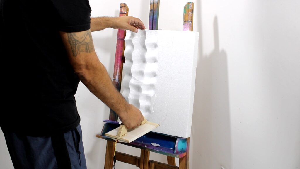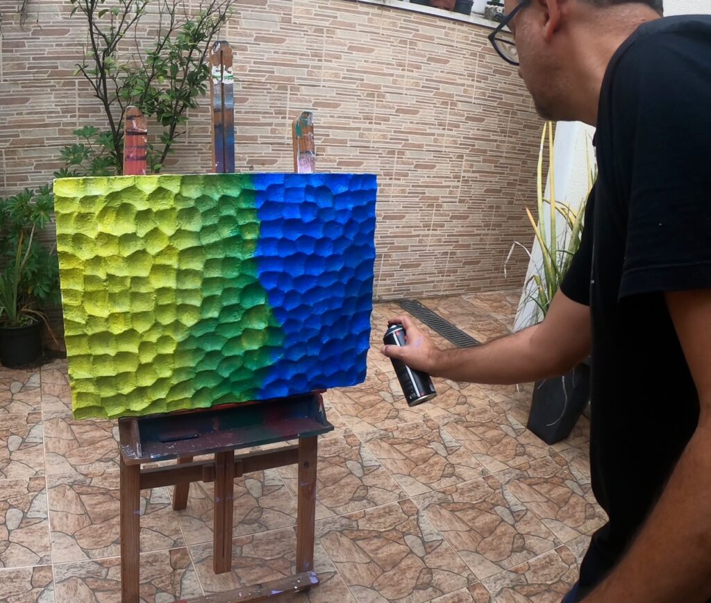É um método completo de criação artística, que vai do preparo da base até a obra pronta, com técnicas autorais desenvolvidas ao longo de anos de prática.
